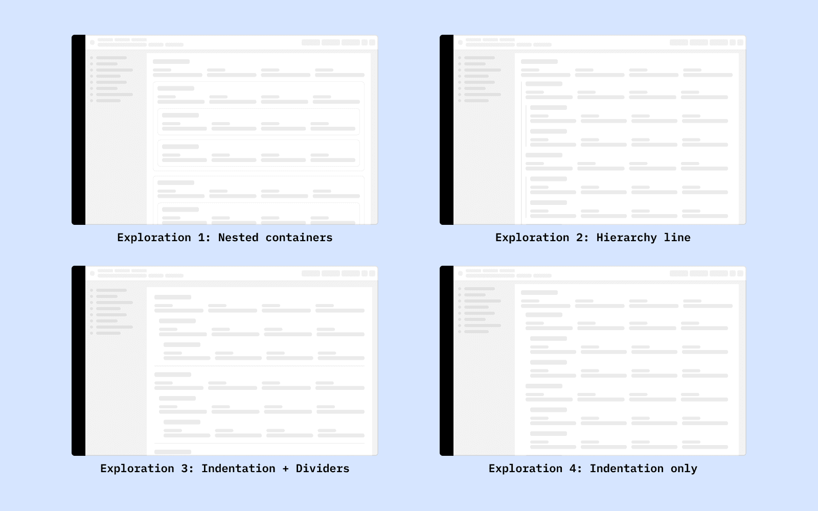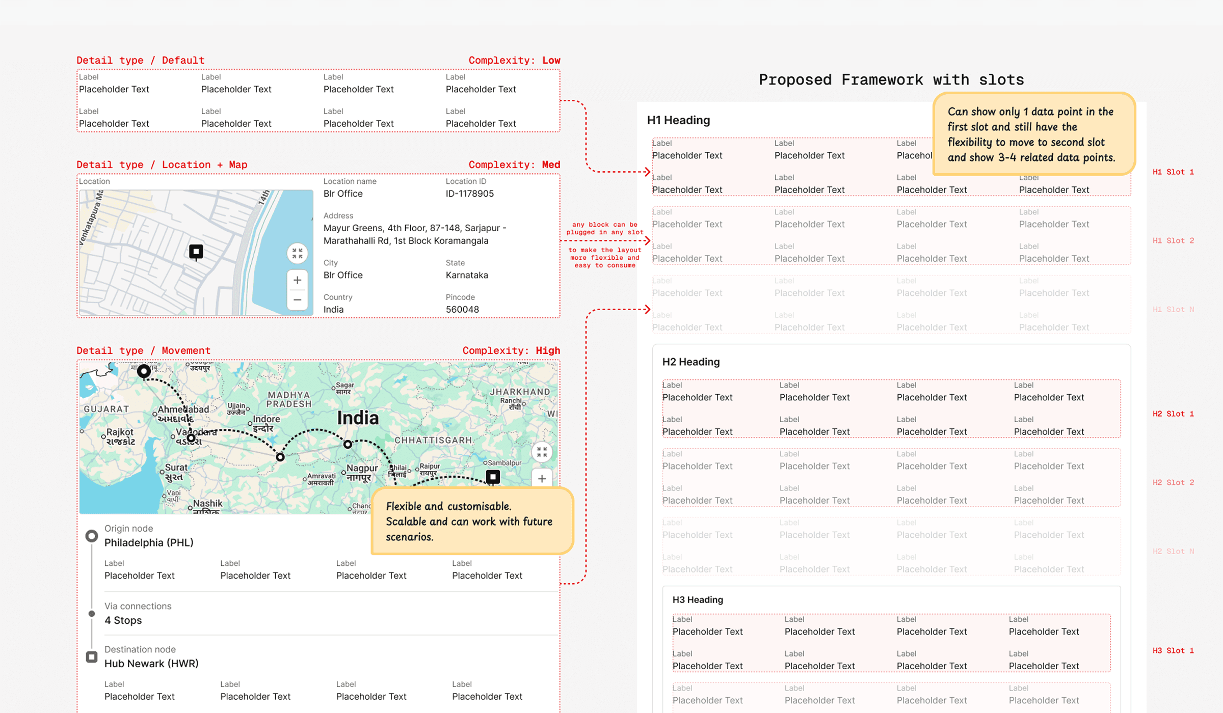 Each approach improved one entity's page but couldn't generalize. Indentation worked for shipments, where origin-to-destination creates a natural hierarchy. Applied to a Hub entity with flat, peer-level attributes, the same indentation implied parent-child relationships that didn't exist. What works for a shipment (journey visualization) is meaningless for a Team entity.